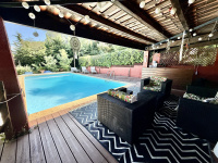 L'IMMO DU SUD vous présente: Située dans le charmant village de Carnoux-en-Provence à quelques minutes de Cassis, cette maison est un véritable havre de paix offrant un cadre de vie exceptionnel. Nichée sur une parcelle généreuse de 1565 m², cette propriété combine calme absolu, commodités accessibles à pied, et absence de vis-à-vis pour une intimité totale. Caractéristiques principales : •Rez-de-chaussée (137 m²) : •Résidence principale spacieuse comprenant : •3 chambres, dont une suite parentale équipée d’un dressing et d’une salle de bain. •Espaces de vie lumineux et fonctionnels. •Étage : •Un T2 indépendant, parfait pour accueillir la famille, des invités ou pour un usage locatif (notamment saisonnier). •Possibilité de relier facilement les deux niveaux pour créer une grande maison familiale. Extérieurs : •Jardin arboré et soigneusement entretenu, idéal pour les amoureux de la nature. •Grande piscine avec son pool house pour profiter des beaux jours. •Garage spacieux, offrant un espace de rangement ou atelier supplémentaire. Un emplacement idéal : •Proximité immédiate des commodités : Écoles, commerces, et services accessibles à pied. •Un environnement résidentiel calme et paisible, tout en étant proche du centre du village. Un potentiel multiple : Cette maison est idéale pour : •Une grande famille recherchant de l’espace et du confort. •Un investissement locatif grâce à son T2 indépendant d'une superficie de 55m2 •Des amateurs de tranquillité souhaitant vivre au cœur d’un cadre verdoyant tout en restant connecté à la vie locale. Taxe Foncière: 2670 euros Prix: 649 000 euros (Frais d'agence inclus dans le prix, à la charge du vendeur) Contactez-nous pour découvrir cette pépite au cœur de Carnoux-en-Provence: 06..03..31..75..57